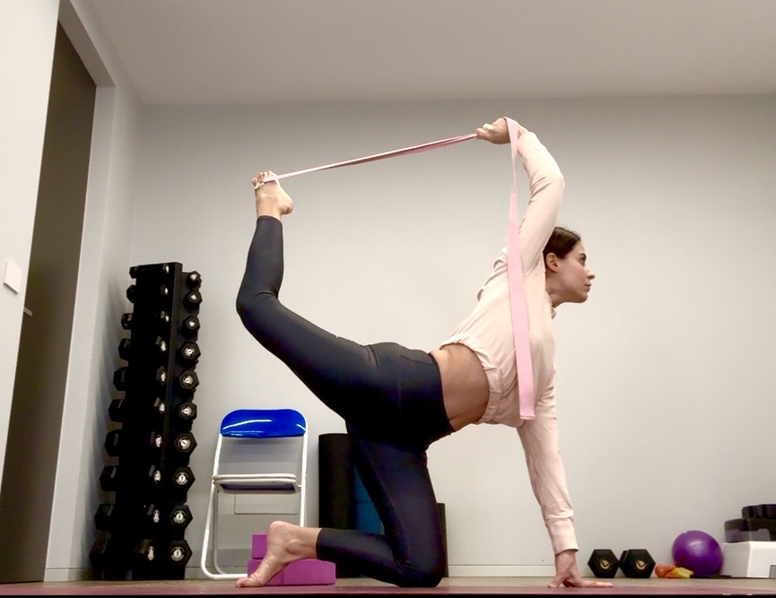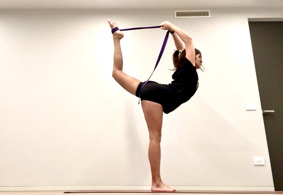 Lavoriamo sulla posizione con presa girata nella posizione di Natarajasana (il danzatore)